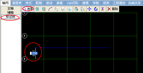 提示:依附于标记线绘制轴线线时,该标记线必须有轴交点,否则不能依附该标记线。