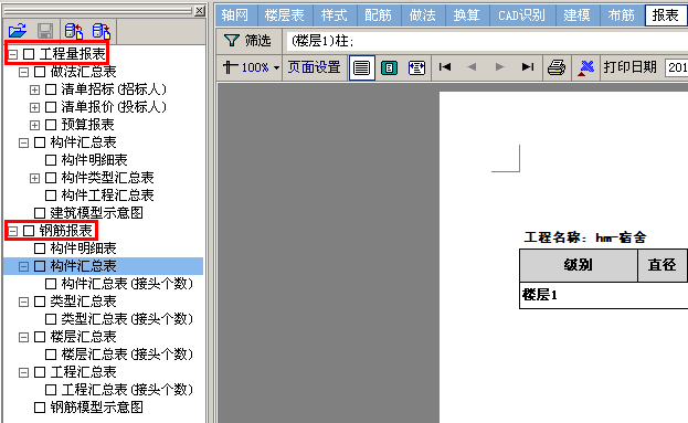 报表分为【工程量报表】和【钢筋报表】。