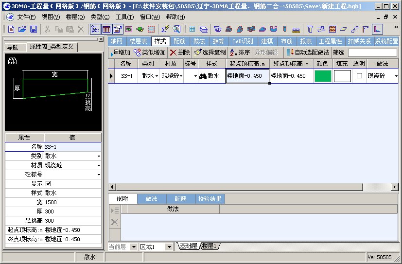 【做法】:选择散水对应的做法,详细见 定义做法。