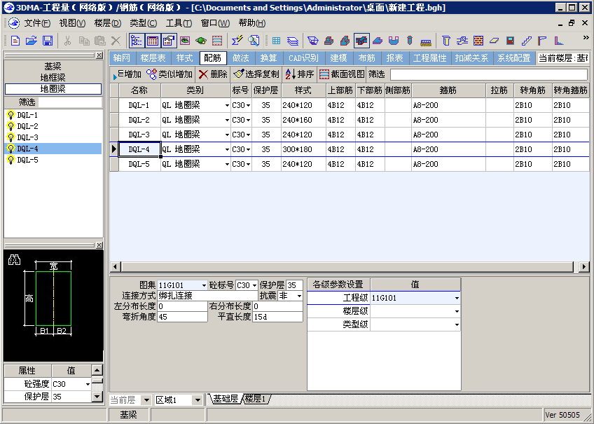 【计算参数】默认参数已按图集设置,图纸中若有特殊构造可单独修改,地圈梁计算参数与圈梁相同,详细见: 计算参数 。
