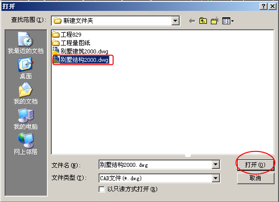 在弹出的“打开”窗口内寻找需要的CAD图纸文件,双击导入完成或单击图纸文件后,再点击右下角“打开”按钮,